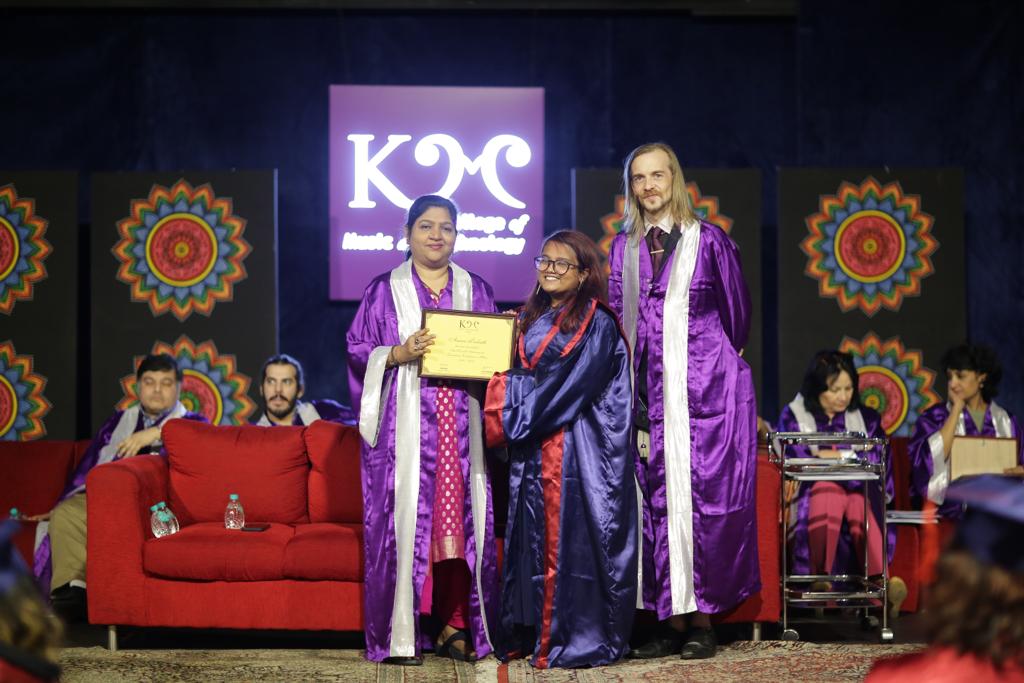The first graduation ceremony since the pandemic, KM celebrated the day in style with scintillating performances from the outgoing batches including singer Sarah Shipchandler and pianist Aarohan Phatela. As the campus was packed with young graduates brimming with life and enthusiasm, the management and senior faculty took this opportunity to announce the inaugural award of the ‘EKWE x Maia Dave Scholarship for Creative Women in Music Technology’. Supported by US-based mobile music app EKWE and award-winning creative innovator Manon Dave, and created on behalf of Manon and Trusha Dave in tribute to their daughter Maia, the scholarship is intended for final-year female students at KM Music Conservatory with a flair for music technology and production. Aaina Padiath is the inaugural recipient of the award and will become an ambassador for EKWE activities in India, supporting and encouraging future young generations of musicians. She will also receive professional mentoring from both the EKWE team and Manon.